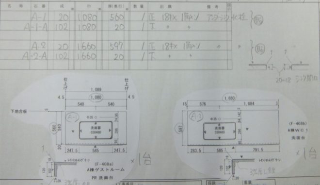 洗面台を製作していました。