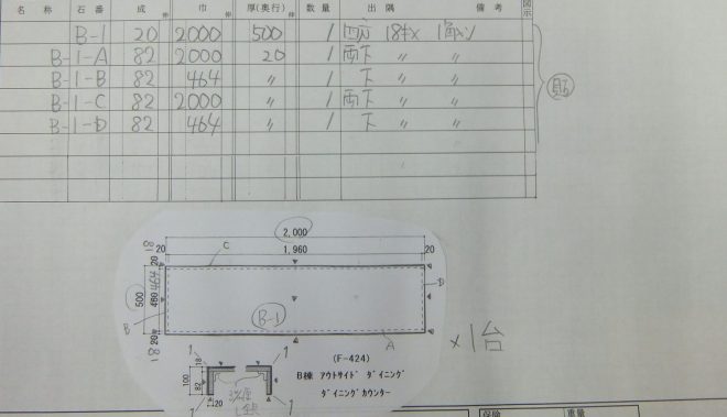 カウンターの前垂れ部分は工場にて接着加工。