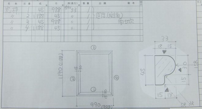 細かな指示がある小段付き坊主加工。