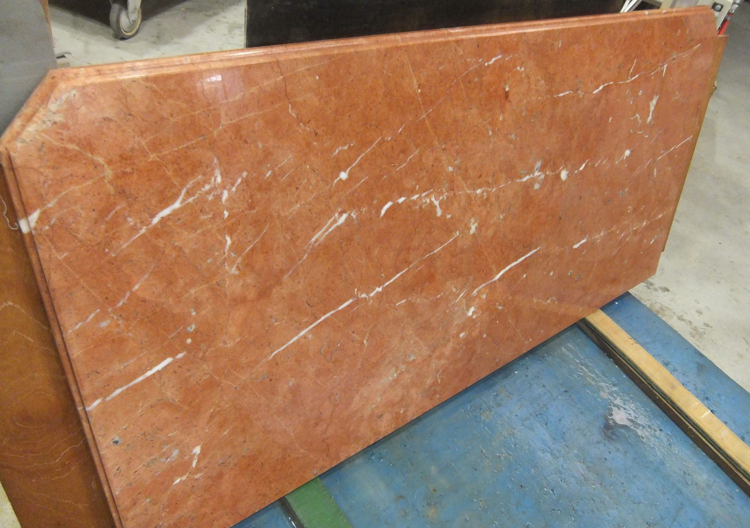 華やかな赤系大理石と小口の細工は、心惹きつける製品へとなりました!